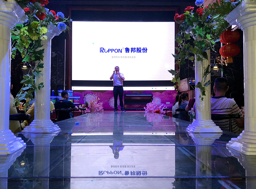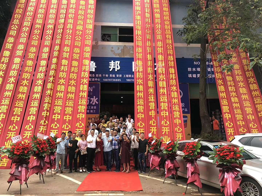 魯邦董事長王斌、總經理李時鋒、魯邦副總經理、佛山分公司總經理張中華 魯邦副總經理高艷生 魯邦市場部萬春順經理,近二百個各地的魯邦經銷商一起見證了魯邦建材贛州運營中心的開業(yè)活動。